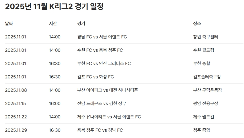 🏟️ K리그2, 어떤 리그일까요? (K리그2 일정, 순위, 결과)