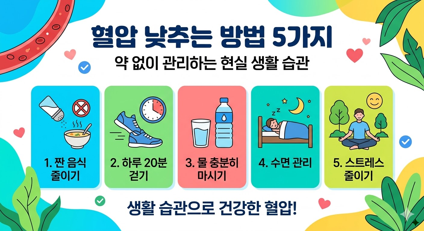 혈압 낮추는 방법 5가지 | 약 없이 관리하는 현실 생활 습관